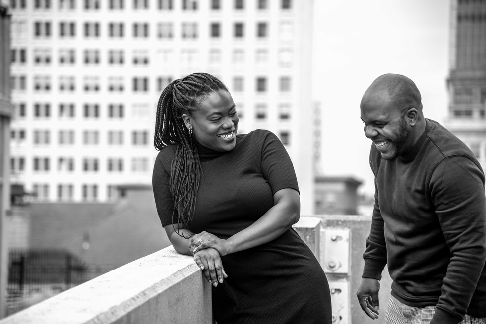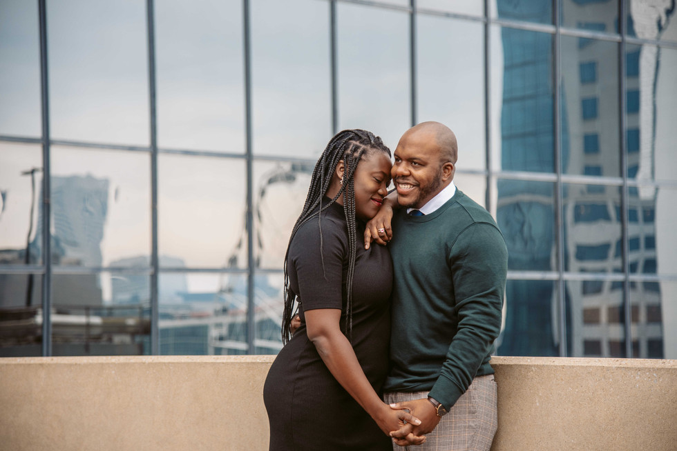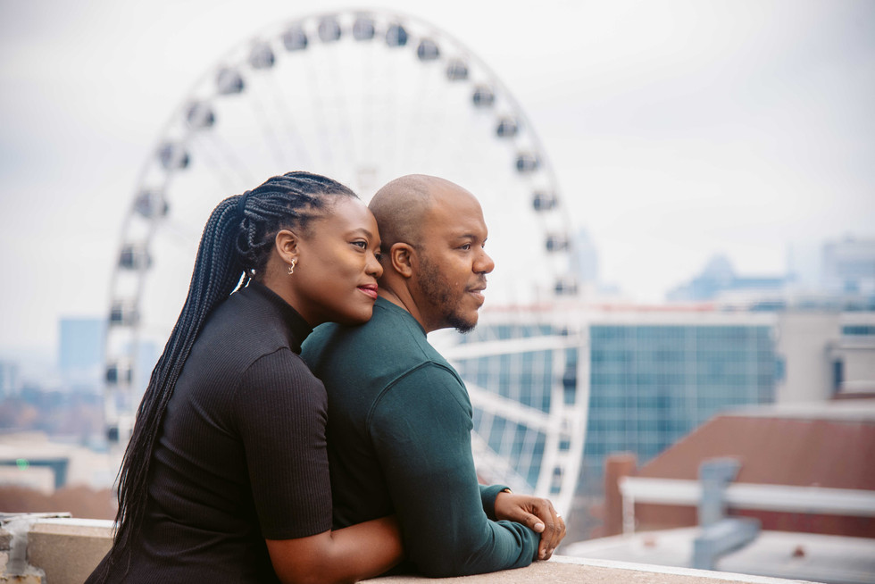 These two were looking for a cityscape background for their couple's session so we took to a rooftop in Downtown Atlanta to showcase the city where they fell in love!